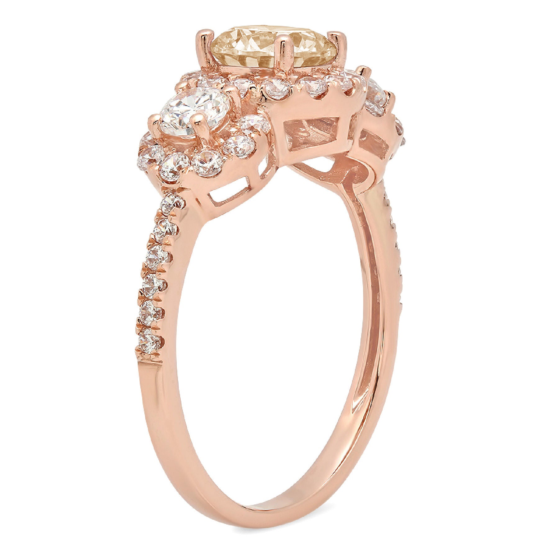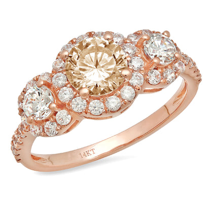 1.46 cttw Natural Morganite Three-Stone Engagement Ring - Solid Gold (Round Cut,6.0mm)
