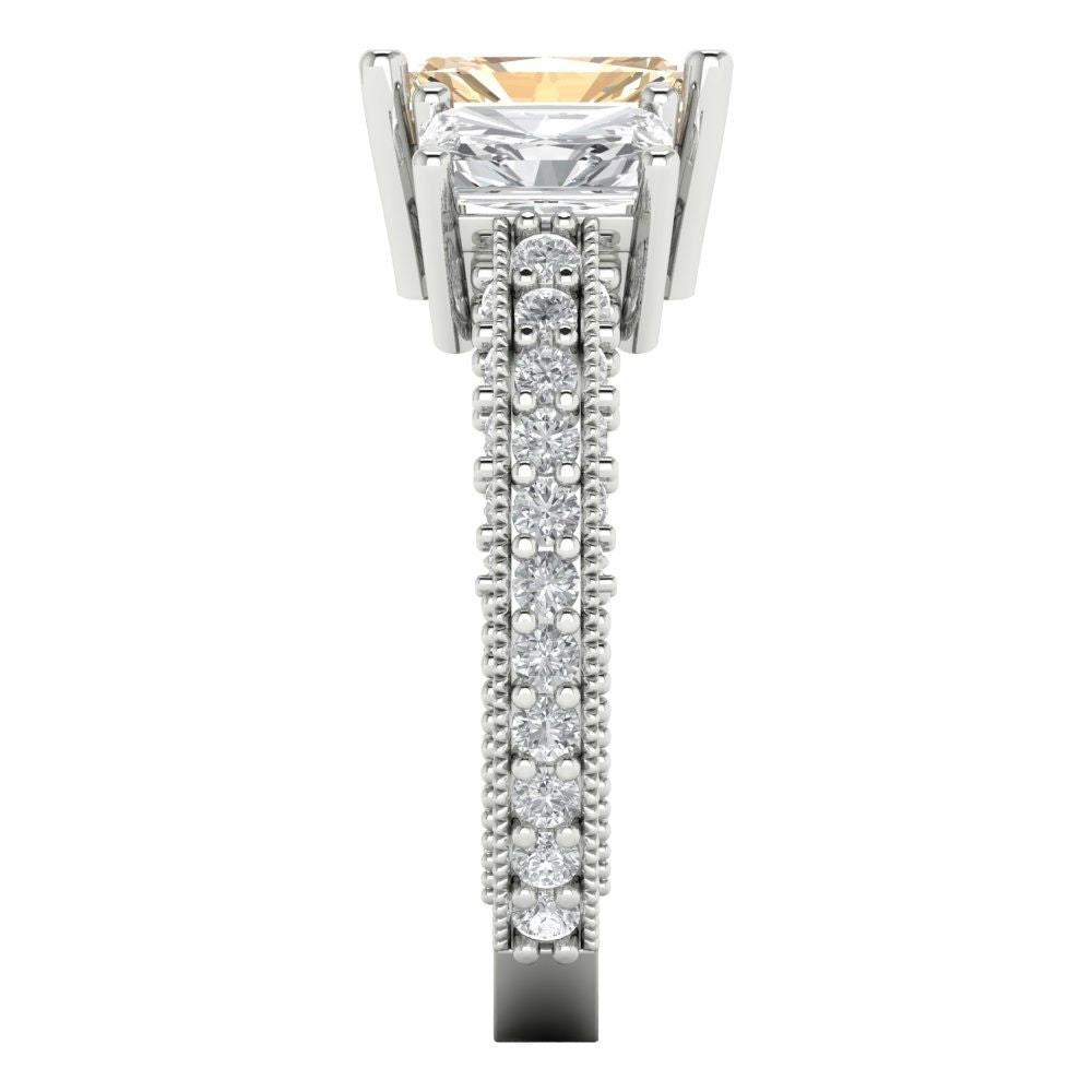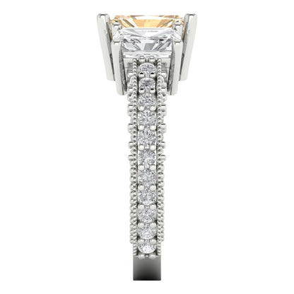 3.61 cttw Natural Morganite Three-Stone Engagement Ring - Solid Gold (Emerald Cut,8x6mm)