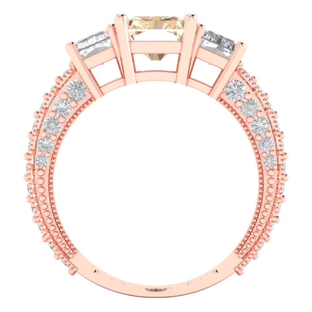 3.61 cttw Natural Morganite Three-Stone Engagement Ring - Solid Gold (Emerald Cut,8x6mm)