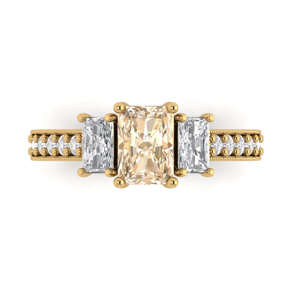 1.88 cttw Natural Morganite Three-Stone Engagement Ring - Solid Gold (Emerald Cut,7x5mm)