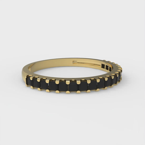0.285 cttw Natural Onyx Princess Cut Yellow Gold Eternity Wedding Band