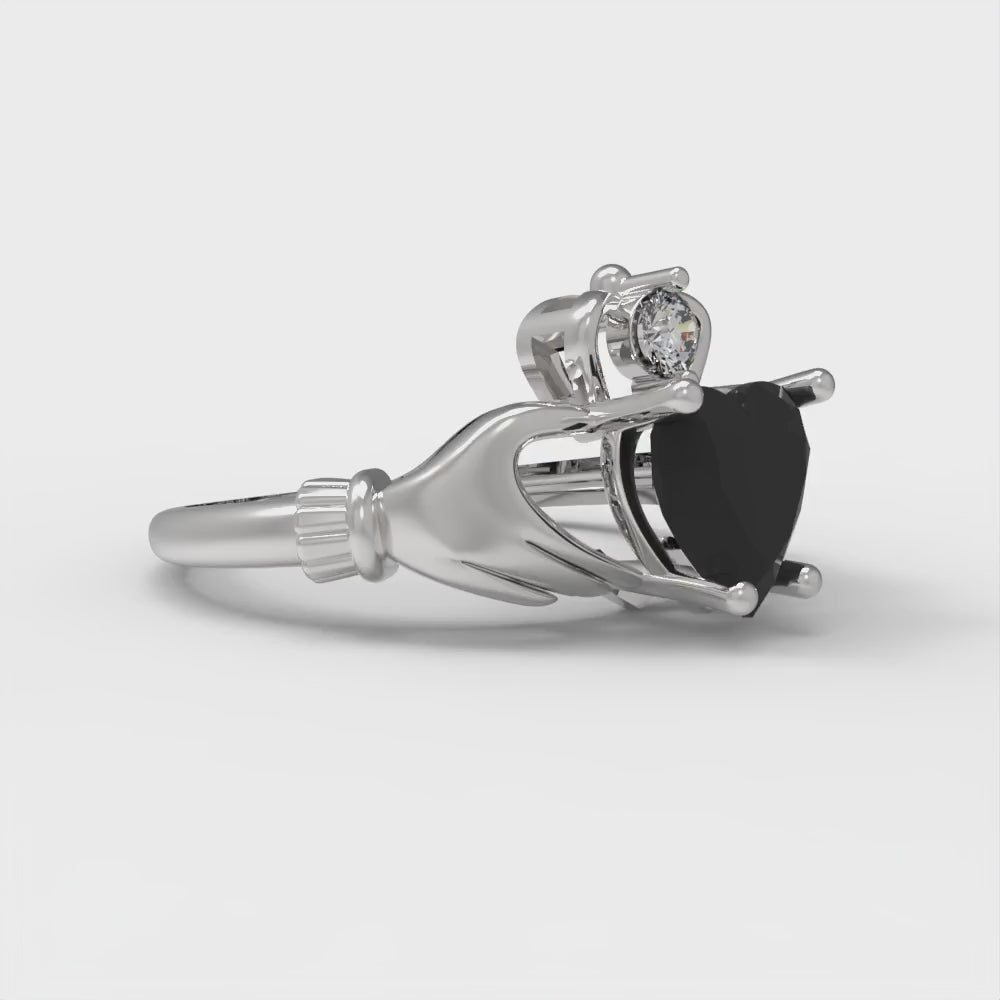 1.05 cttw Natural Onyx Celtic Claddagh Engagement Ring - Solid Gold (Heart Cut,6.5mm)