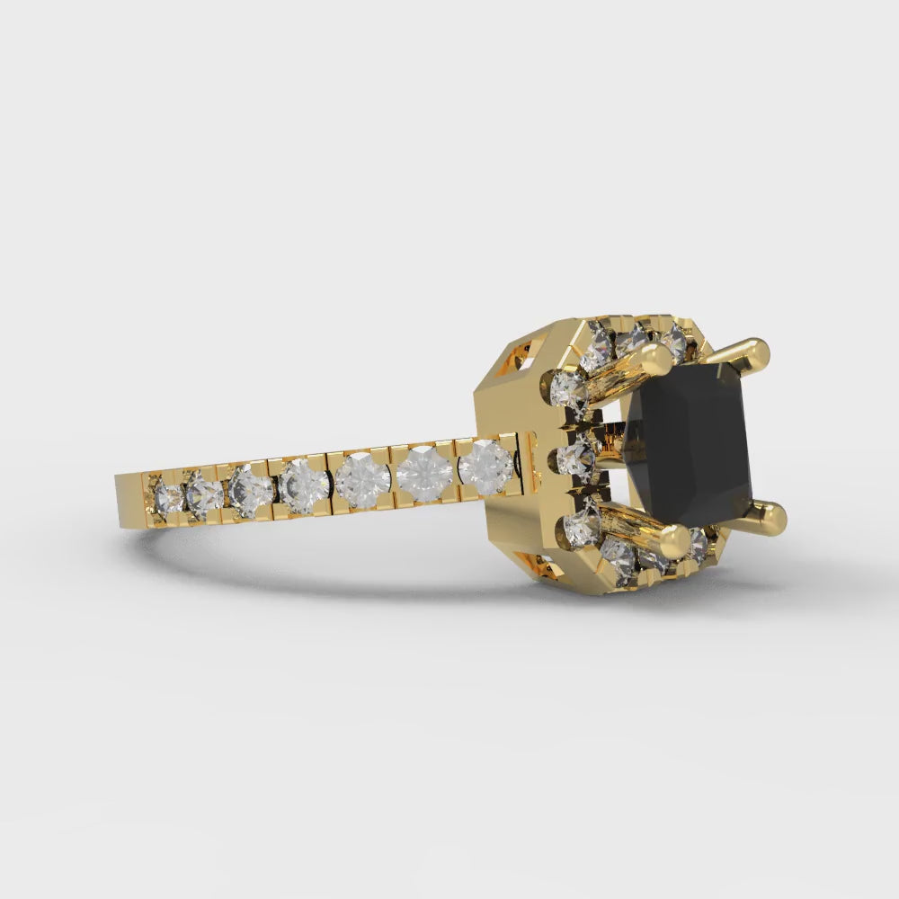 0.89 cttw Natural Onyx Hidden Halo Engagement Ring - Solid Gold (Princess Cut,4.5mm)