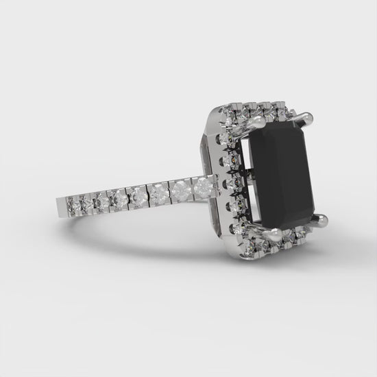 1.86 cttw Natural Onyx Hidden Halo Engagement Ring - Solid Gold (Emerald Cut,7.5x5.5mm)