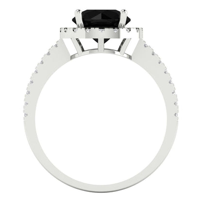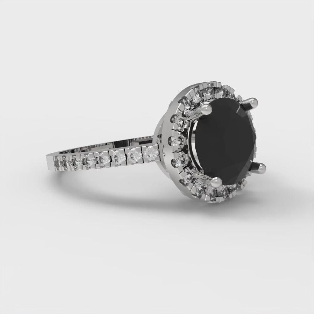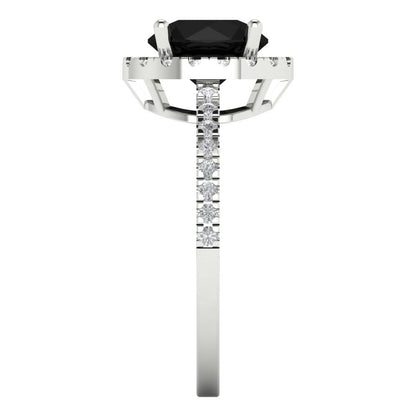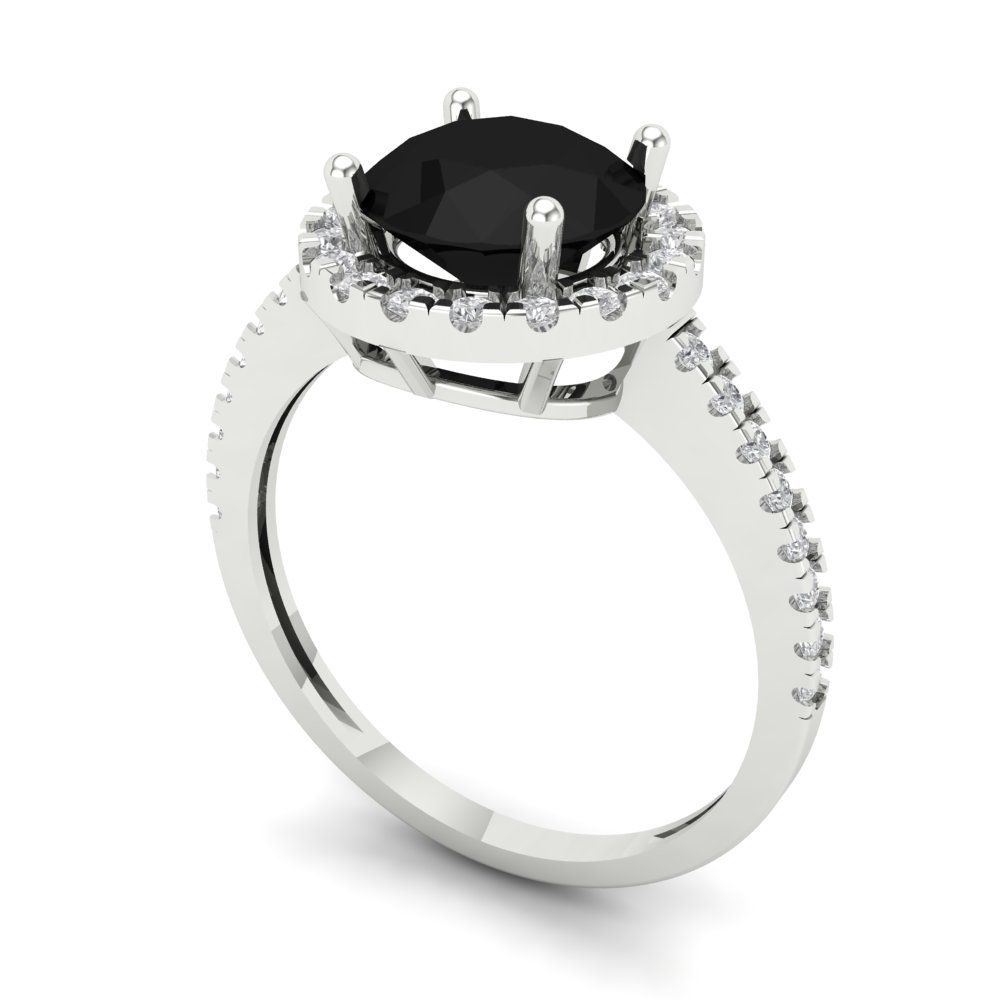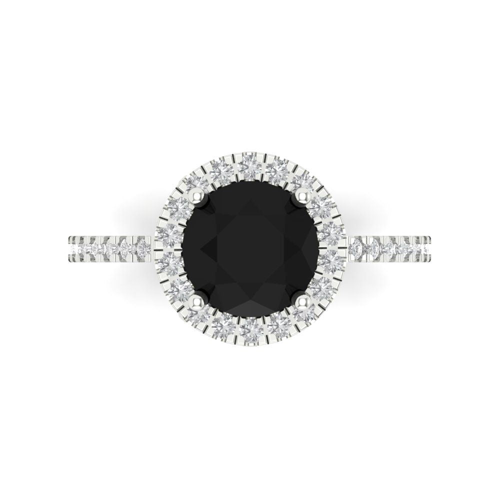 1.8 cttw Natural Onyx Hidden Halo Engagement Ring - Solid Gold (Round Cut,7.5mm)