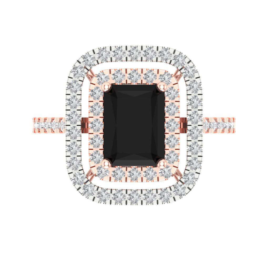 2.62 cttw Natural Onyx Hidden Halo Engagement Ring - Solid Rose/White Gold (VVS1, Emerald Cut,8X6.0mm)