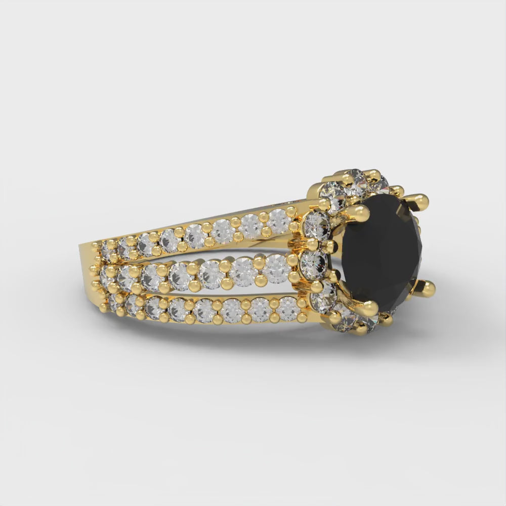1.83 cttw Natural Onyx Hidden Halo Engagement Ring - Solid Gold (Round Cut,6.5mm)