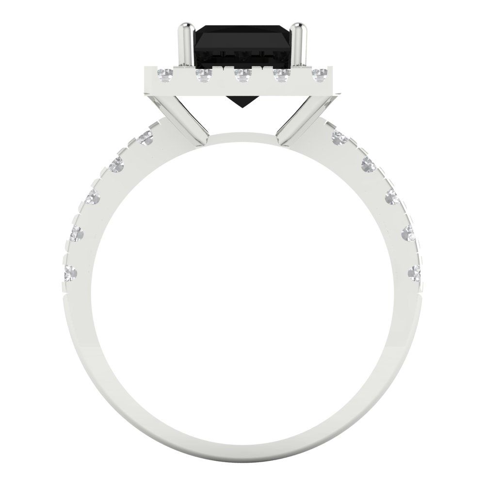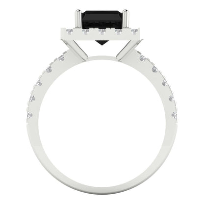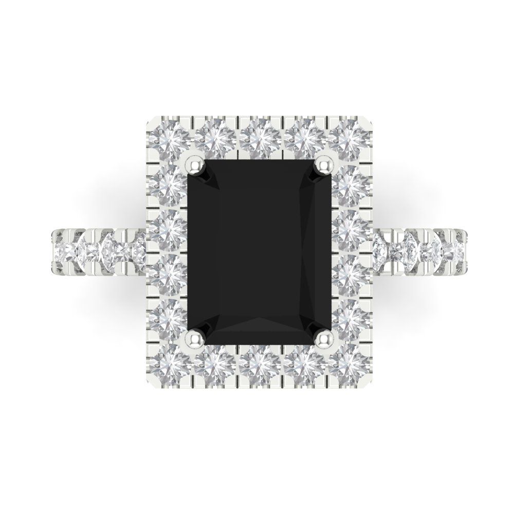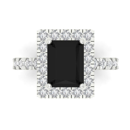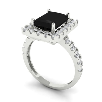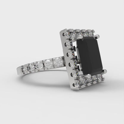 3.84 cttw Natural Onyx Hidden Halo Engagement Ring - Solid Gold (Emerald Cut,9x7mm)