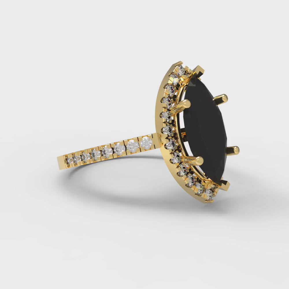 2.38 cttw Natural Onyx Hidden Halo Engagement Ring - Solid Gold (Marquise Cut,12x6mm )