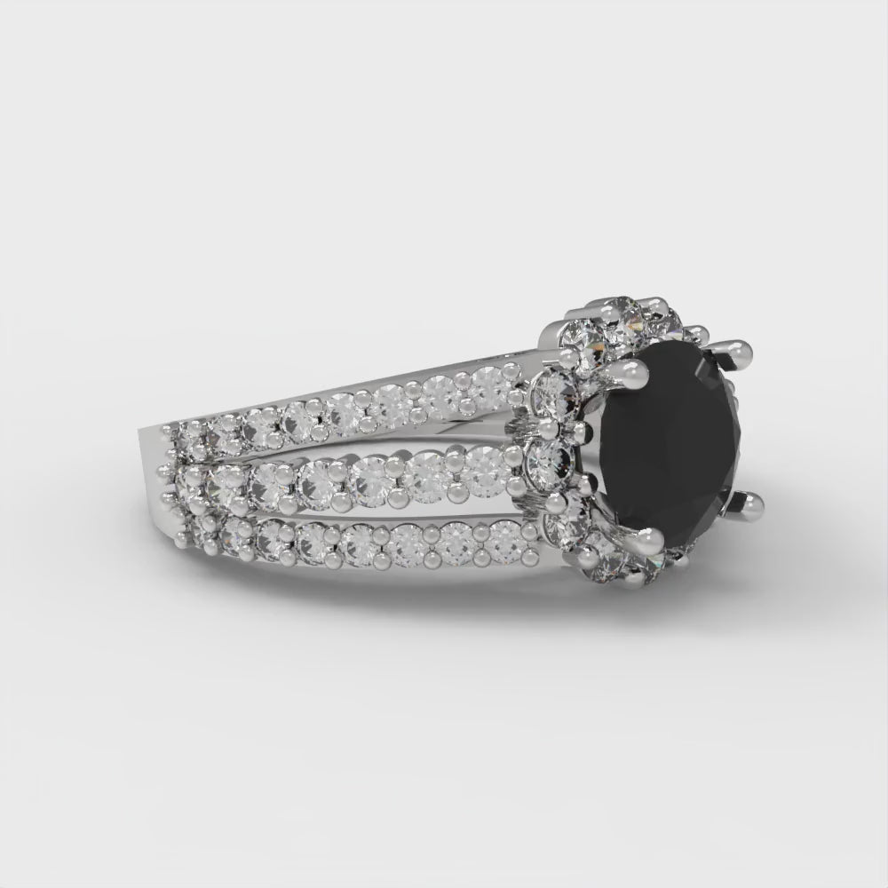 1.83 cttw Natural Onyx Hidden Halo Engagement Ring - Solid Gold (Round Cut,6.5mm)