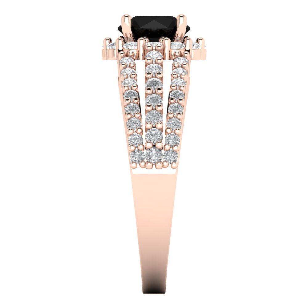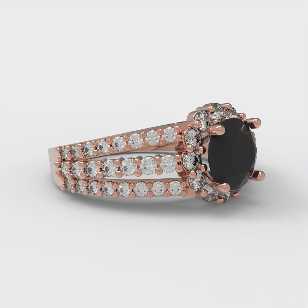 1.83 cttw Natural Onyx Hidden Halo Engagement Ring - Solid Gold (Round Cut,6.5mm)