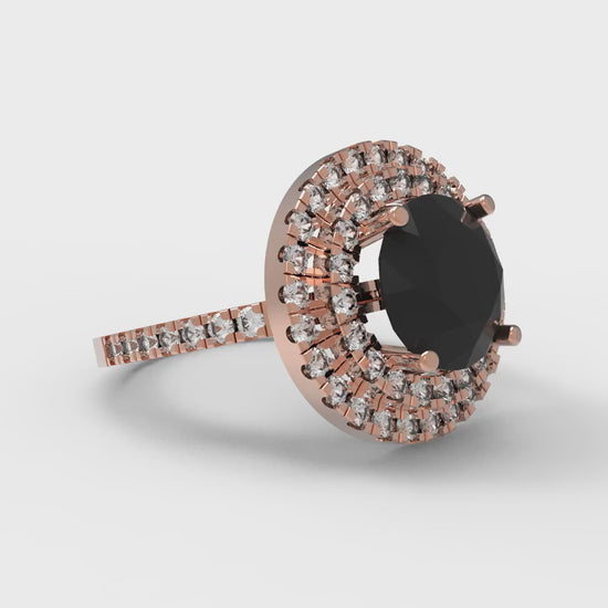 2.6 cttw Natural Onyx Hidden Halo Engagement Ring - Solid Gold (Round Cut,8.0mm)