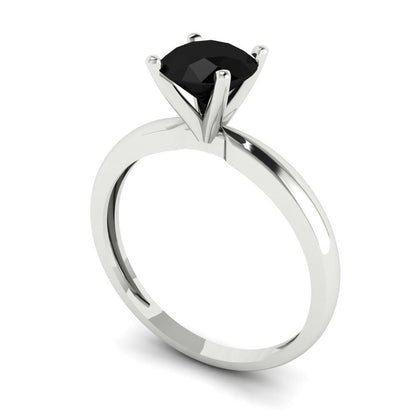 1 cttw Natural Onyx Solitaire Engagement Ring - Solid Gold (Round Cut,6.5mm)