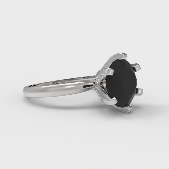 3 cttw Natural Onyx Solitaire Engagement Ring - Solid Gold (Round Cut,9mm)
