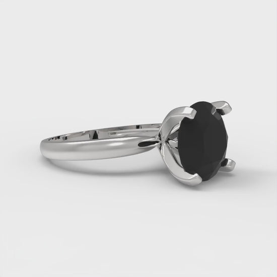 3 cttw Natural Onyx Solitaire Engagement Ring - Solid Gold (Round Cut,9mm)