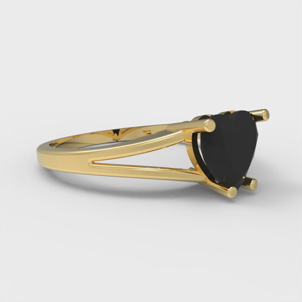 1 cttw Natural Onyx Solitaire Engagement Ring - Solid Gold (Heart Cut,6.5mm)