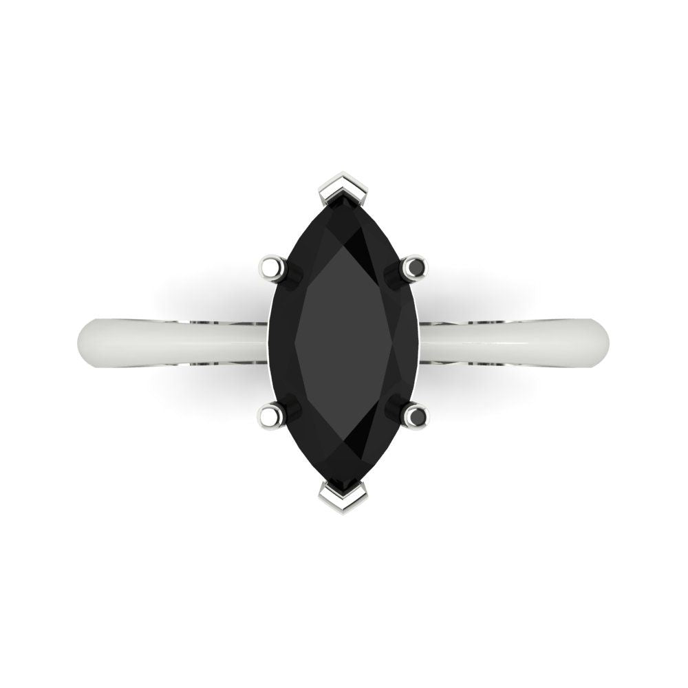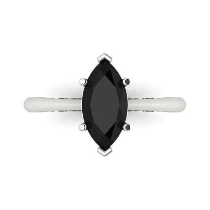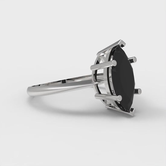 1.5 cttw Natural Onyx Solitaire Engagement Ring - Solid Gold (Marquise Cut ,11x5.5mm)