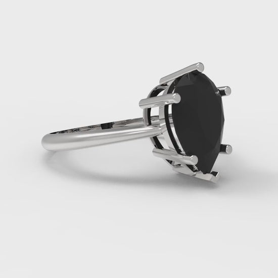2 cttw Natural Onyx Solitaire Engagement Ring - Solid Gold (Pear Cut,10x7mm)