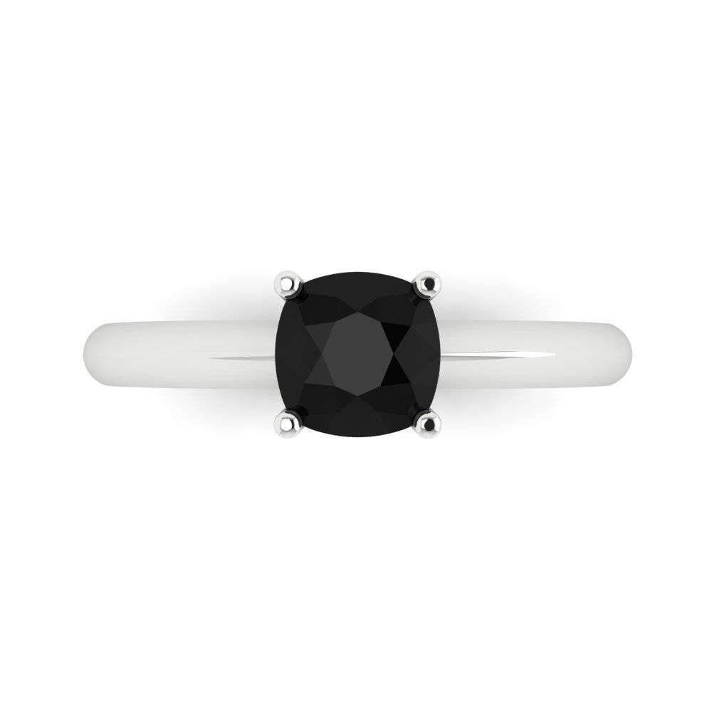 1 cttw Natural Onyx Solitaire Engagement Ring - Solid Gold (Cushion Cut,6mm)