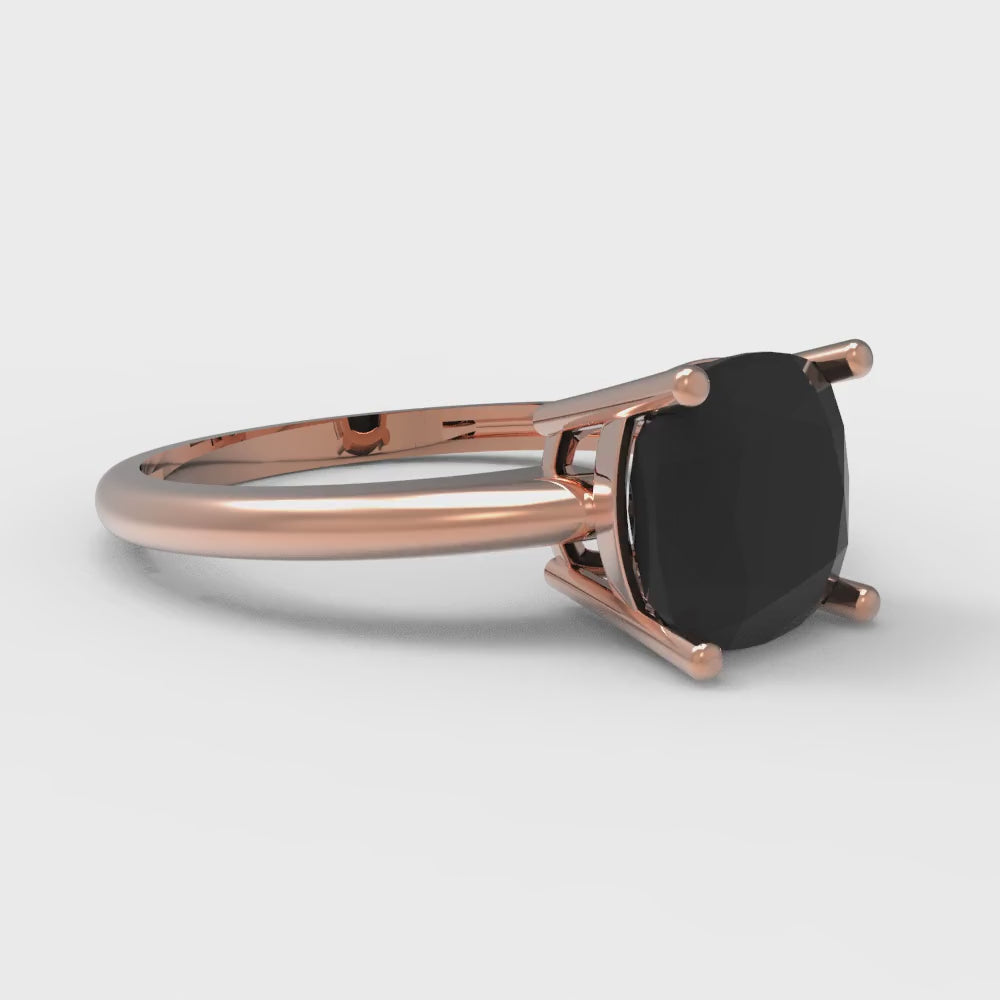 2 cttw Natural Onyx Solitaire Engagement Ring - Solid Gold (Cushion Cut,7mm)