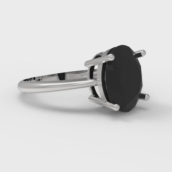2.5 cttw Natural Onyx Solitaire Engagement Ring - Solid Gold (Oval Cut,9.5x7.5mm)