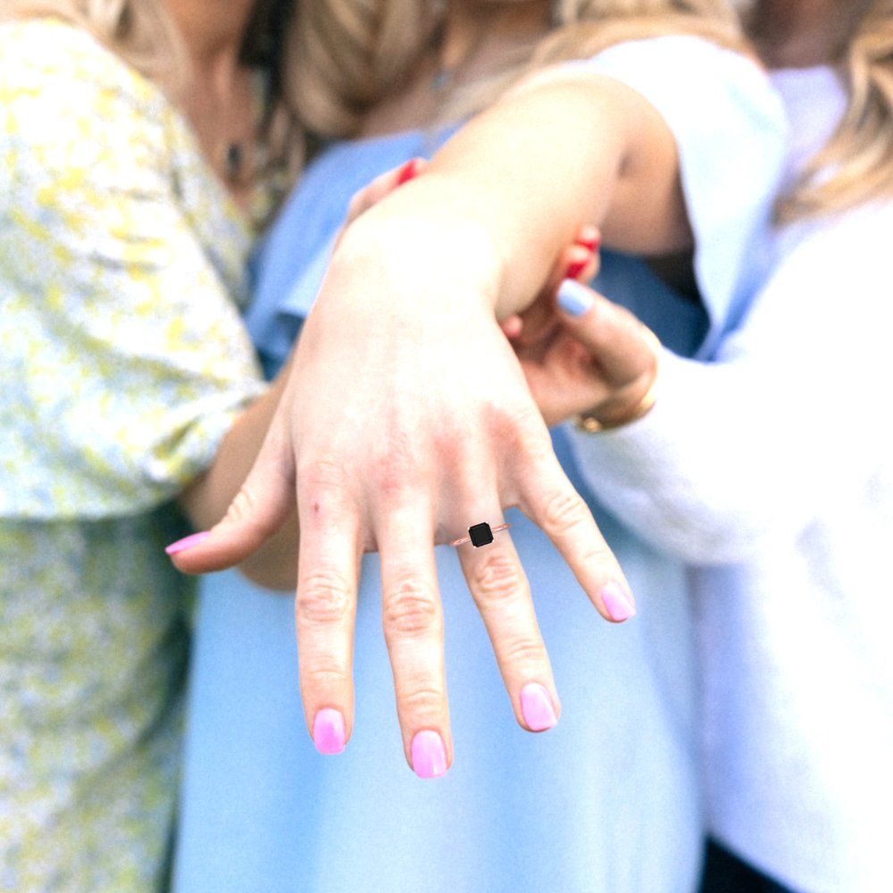 1.5 cttw Natural Onyx Solitaire Engagement Ring - Solid Gold (Asscher Cut,6.5mm)