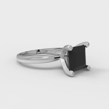 2 cttw Natural Onyx Solitaire Engagement Ring - Solid Gold (Princess Cut,7.0mm)