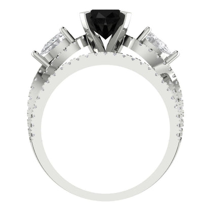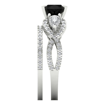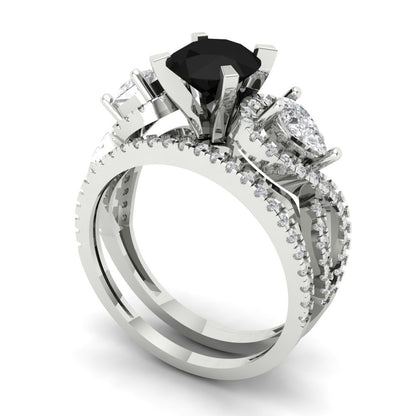 1.925 cttw Round Cut Natural Onyx Bridal Set - Solid White Gold Engagement Ring & Wedding Band
