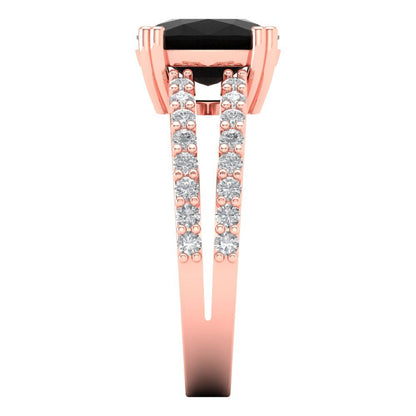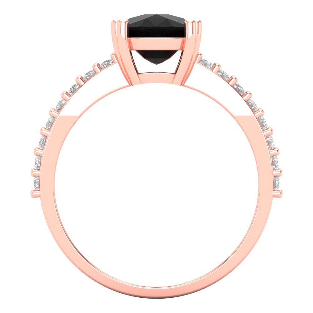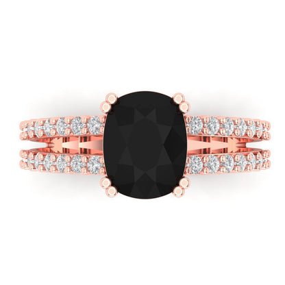 3.48 cttw Natural Onyx Solitaire with Zirconia Simulated Diamond Accents Engagement Ring - Solid Gold (Long Cushion Cut,9x7mm)