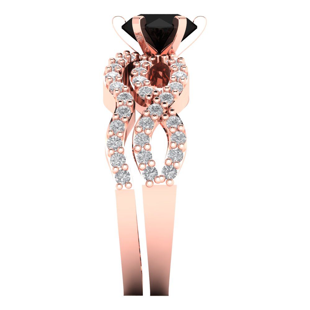 1.57 cttw Round Cut Natural Onyx Bridal Set - Solid Rose Gold Engagement Ring & Wedding Band