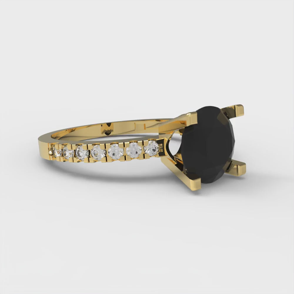 1.71 cttw Natural Onyx Solitaire with Zirconia Simulated Diamond Accents Engagement Ring - Solid Gold (Round Cut,7.5mm)