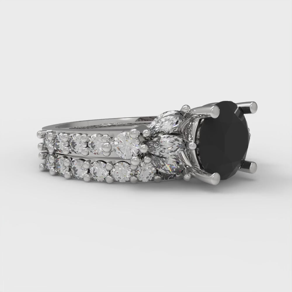 2.94 cttw Round Cut Natural Onyx Bridal Set - Solid White Gold Engagement Ring & Wedding Band