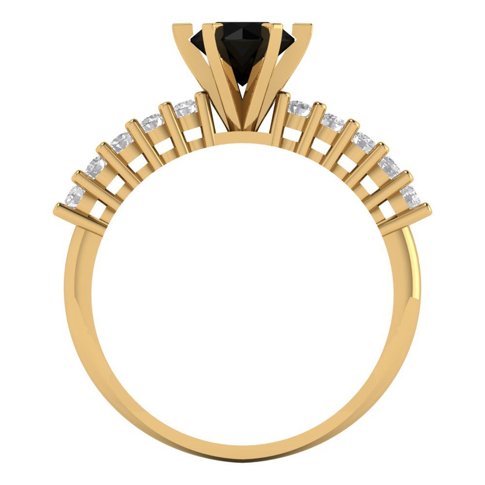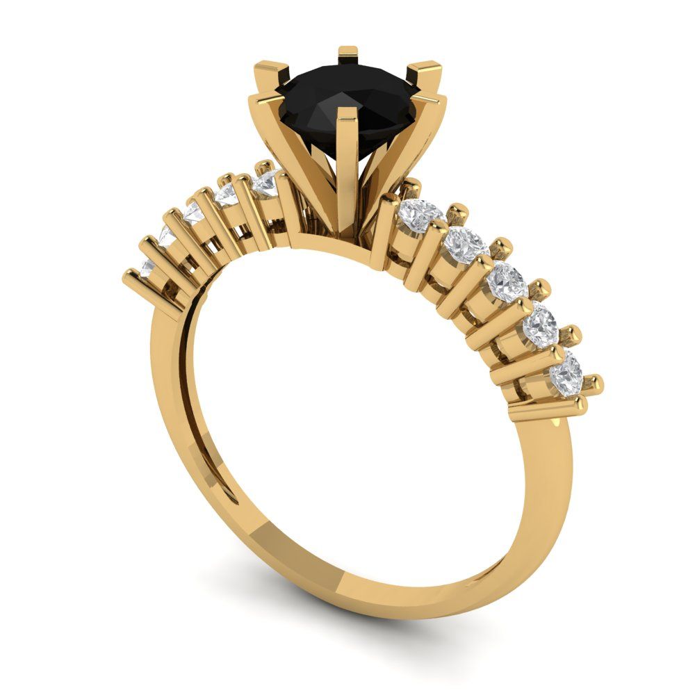 1.05 cttw Natural Onyx Solitaire with Zirconia Simulated Diamond Accents Engagement Ring - Solid Gold (Round Cut,6.0mm)