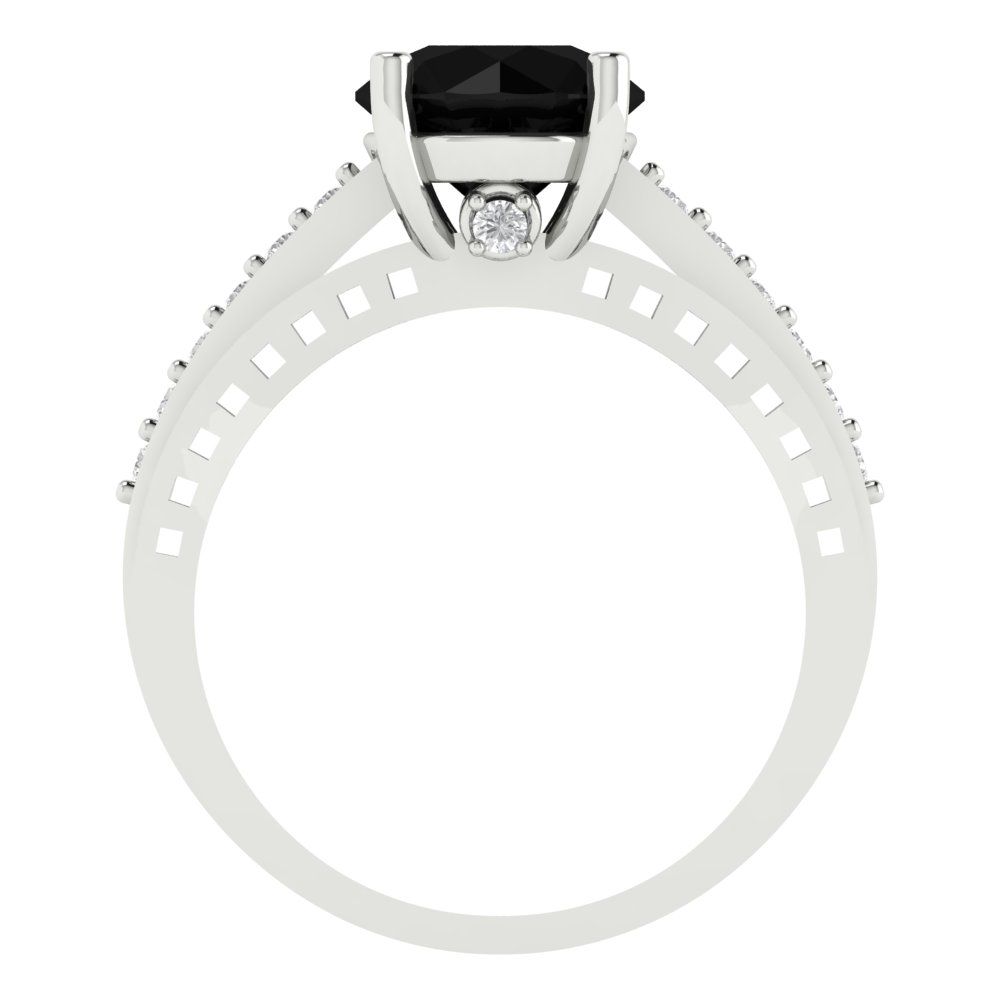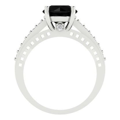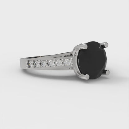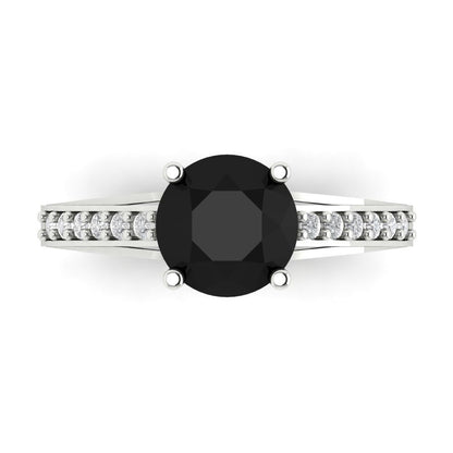 2.21 cttw Natural Onyx Solitaire with Zirconia Simulated Diamond Accents Engagement Ring - Solid Gold (Round Cut,8.0mm)