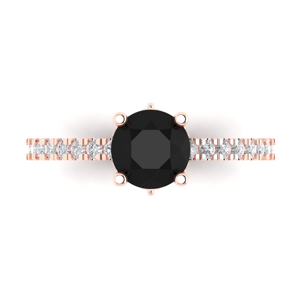 1.465 cttw Natural Onyx Solitaire with Zirconia Simulated Diamond Accents Engagement Ring - Solid Gold (Round Cut,6.5mm)