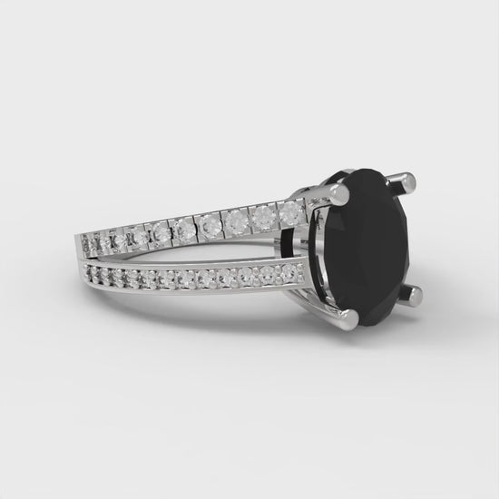 2.32 cttw Natural Onyx Solitaire with Zirconia Simulated Diamond Accents Engagement Ring - Solid Gold (Oval Cut,9X7mm)