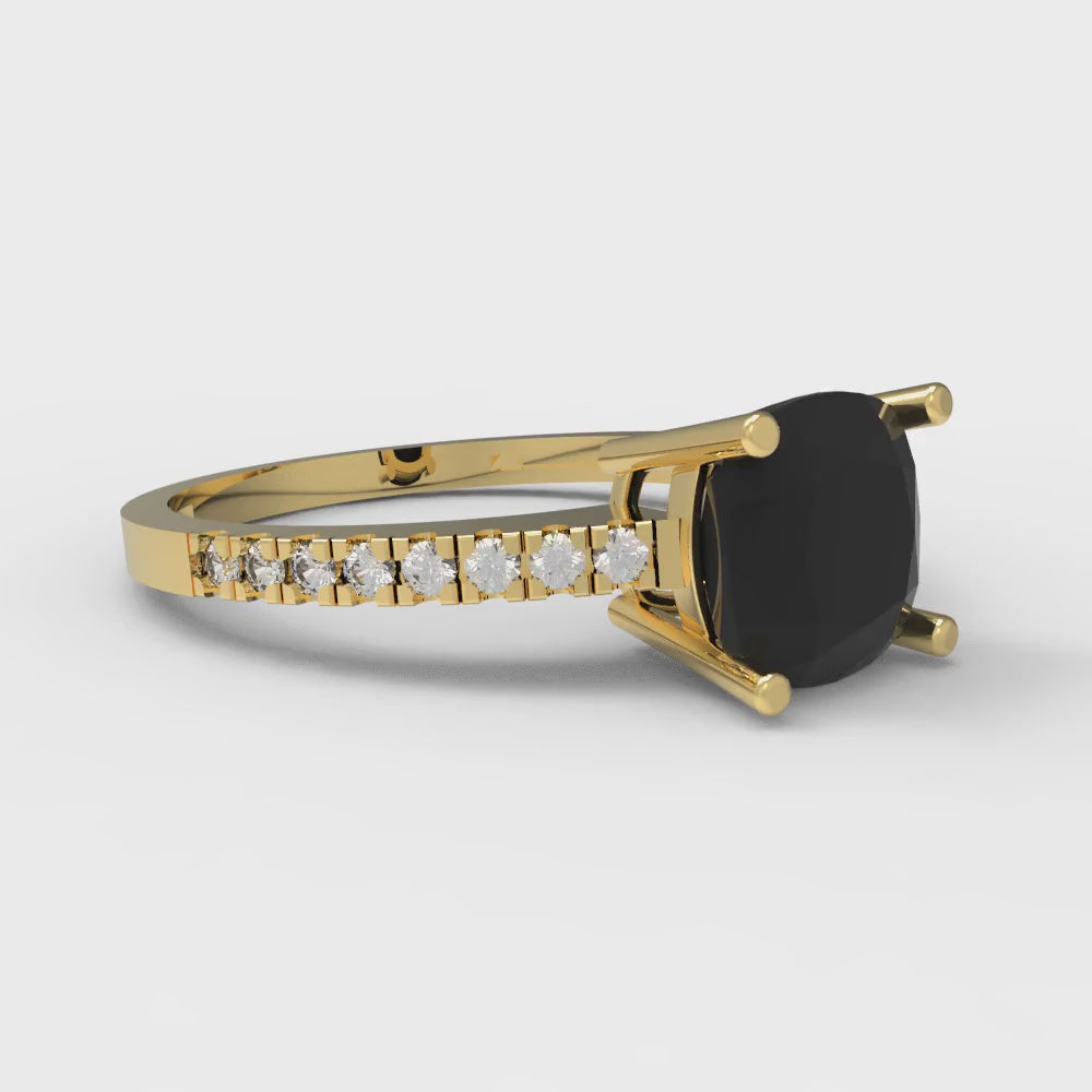 2.7 cttw Natural Onyx Solitaire with Zirconia Simulated Diamond Accents Engagement Ring - Solid Gold (Cushion Cut,6.5mm)