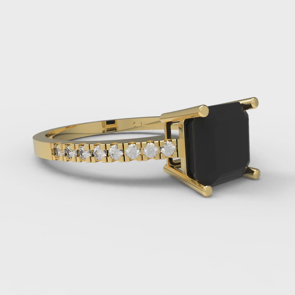 2.7 cttw Natural Onyx Solitaire with Zirconia Simulated Diamond Accents Engagement Ring - Solid Gold (Asscher Cut,6.5mm)