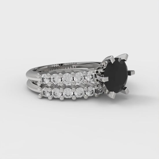 1.66 cttw Round Cut Natural Onyx Bridal Set - Solid White Gold Engagement Ring & Wedding Band