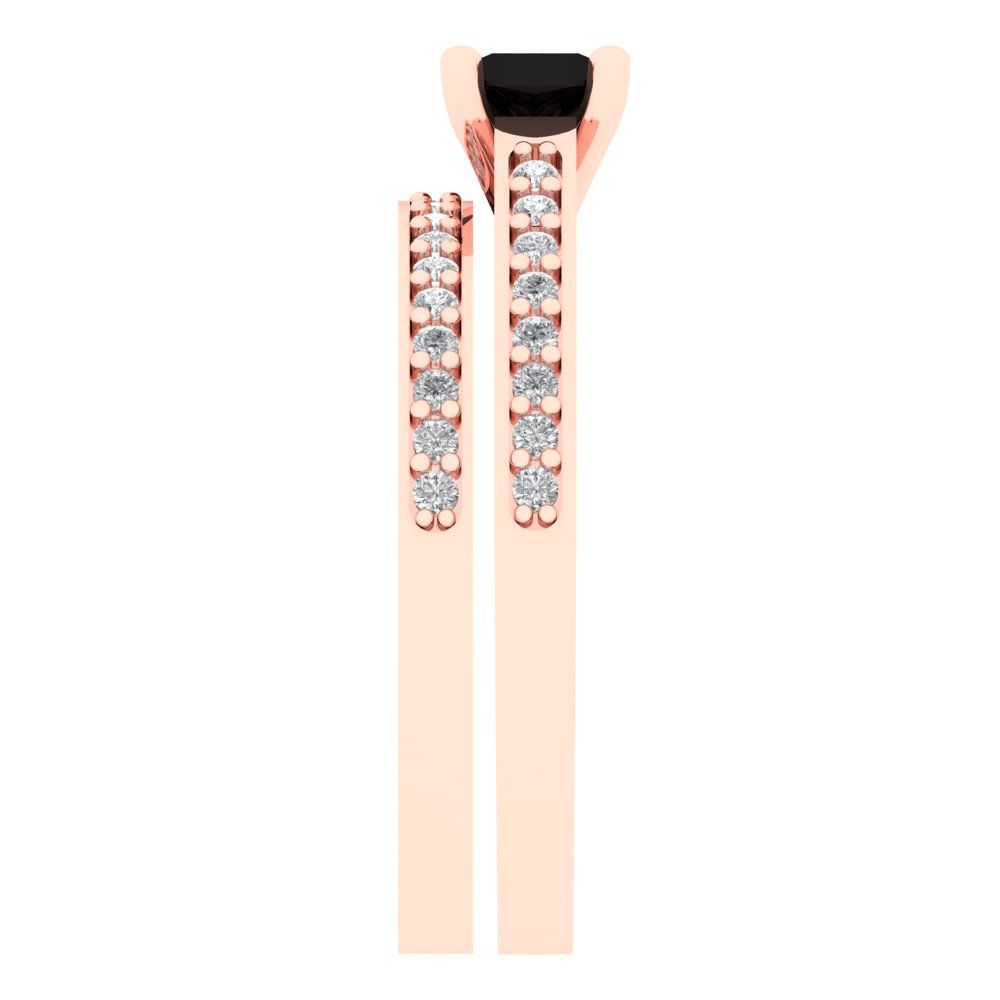 0.86 cttw Round Cut Natural Onyx Bridal Set - Solid Rose Gold Engagement Ring & Wedding Band