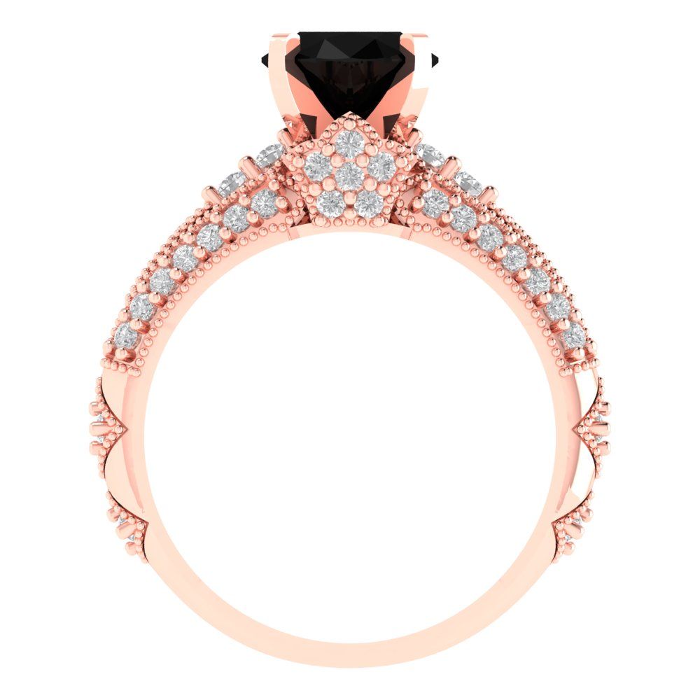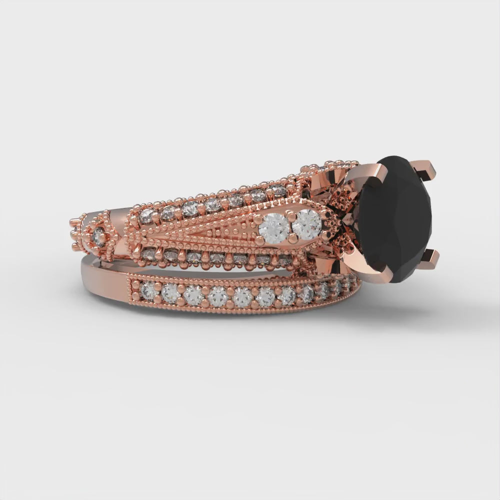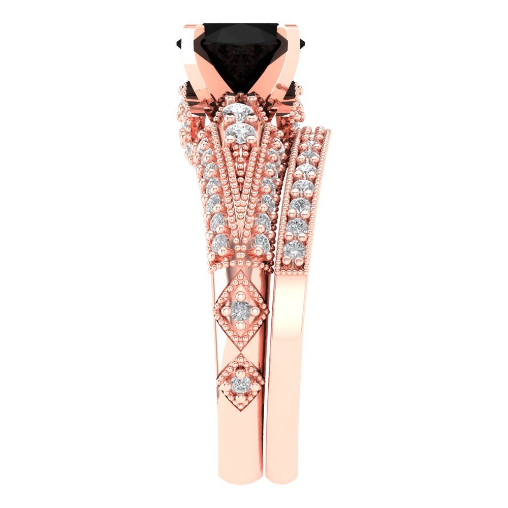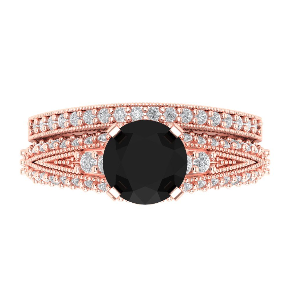 2.095 cttw Round Cut Natural Onyx Bridal Set - Solid Rose Gold Engagement Ring & Wedding Band