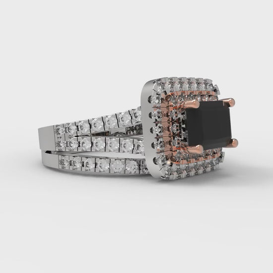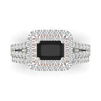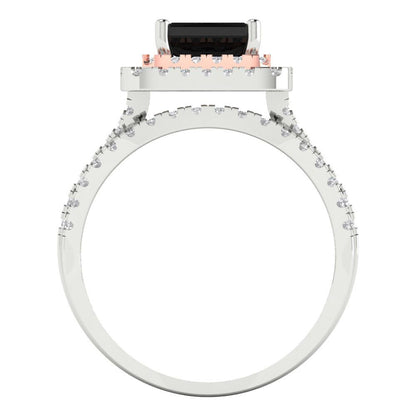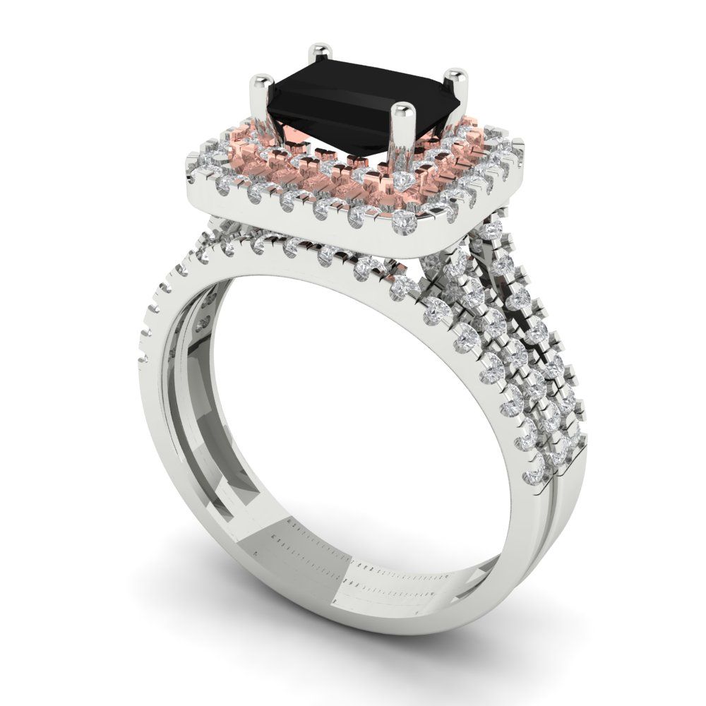 3.05 cttw Emerald Cut Natural Onyx Bridal Set - Solid White/Rose Gold Engagement Ring & Wedding Band