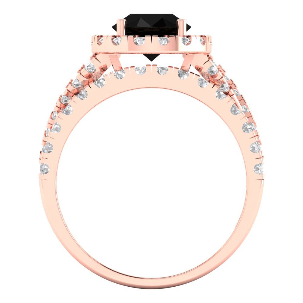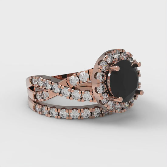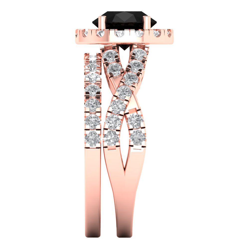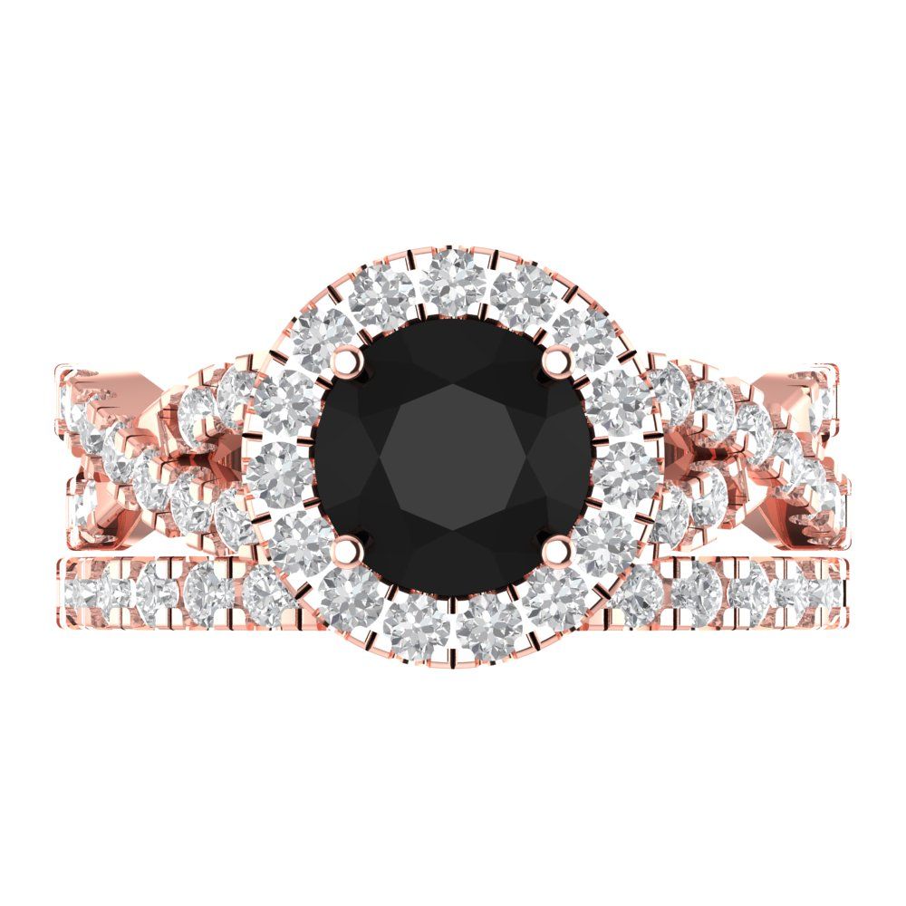 1.795 cttw Round Cut Natural Onyx Bridal Set - Solid Rose Gold Engagement Ring & Wedding Band
