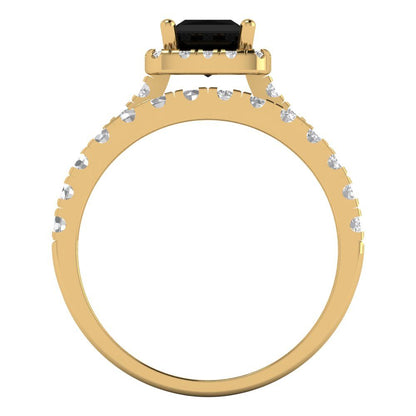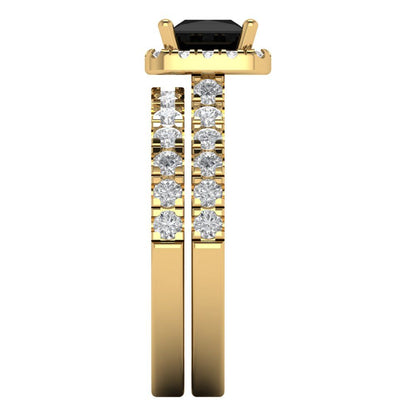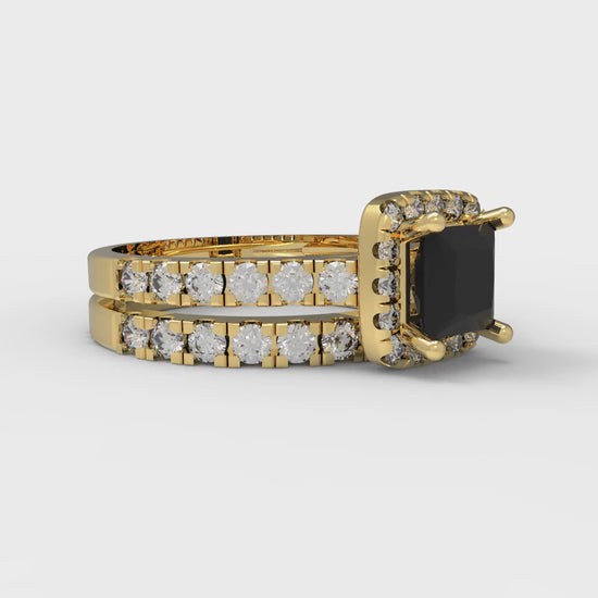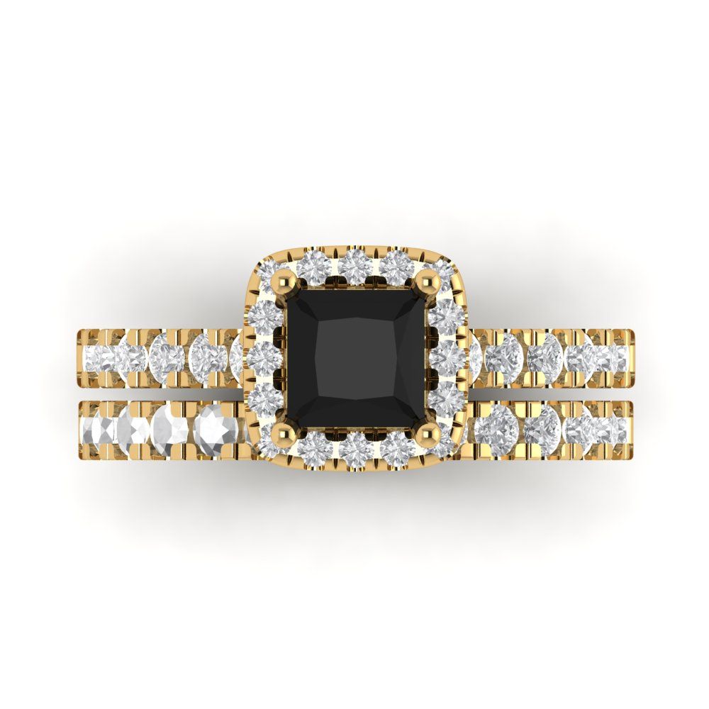 1.56 cttw Princess Cut Natural Onyx Bridal Set - Solid Yellow Gold Engagement Ring & Wedding Band