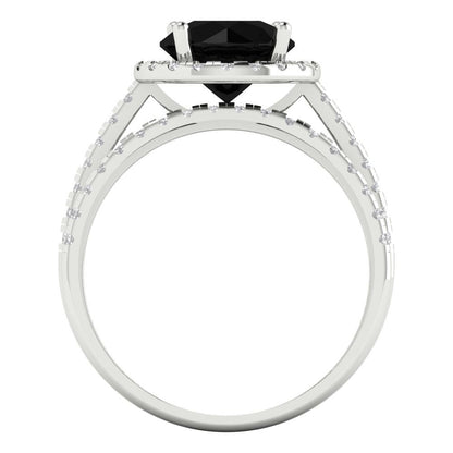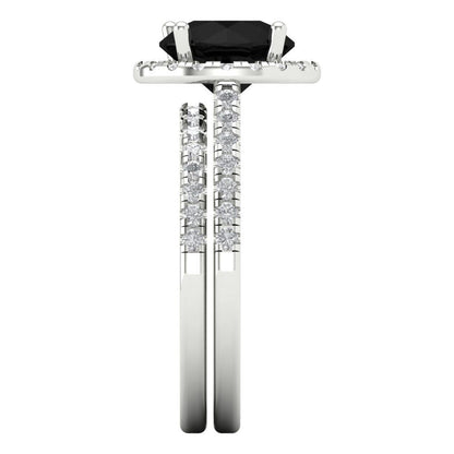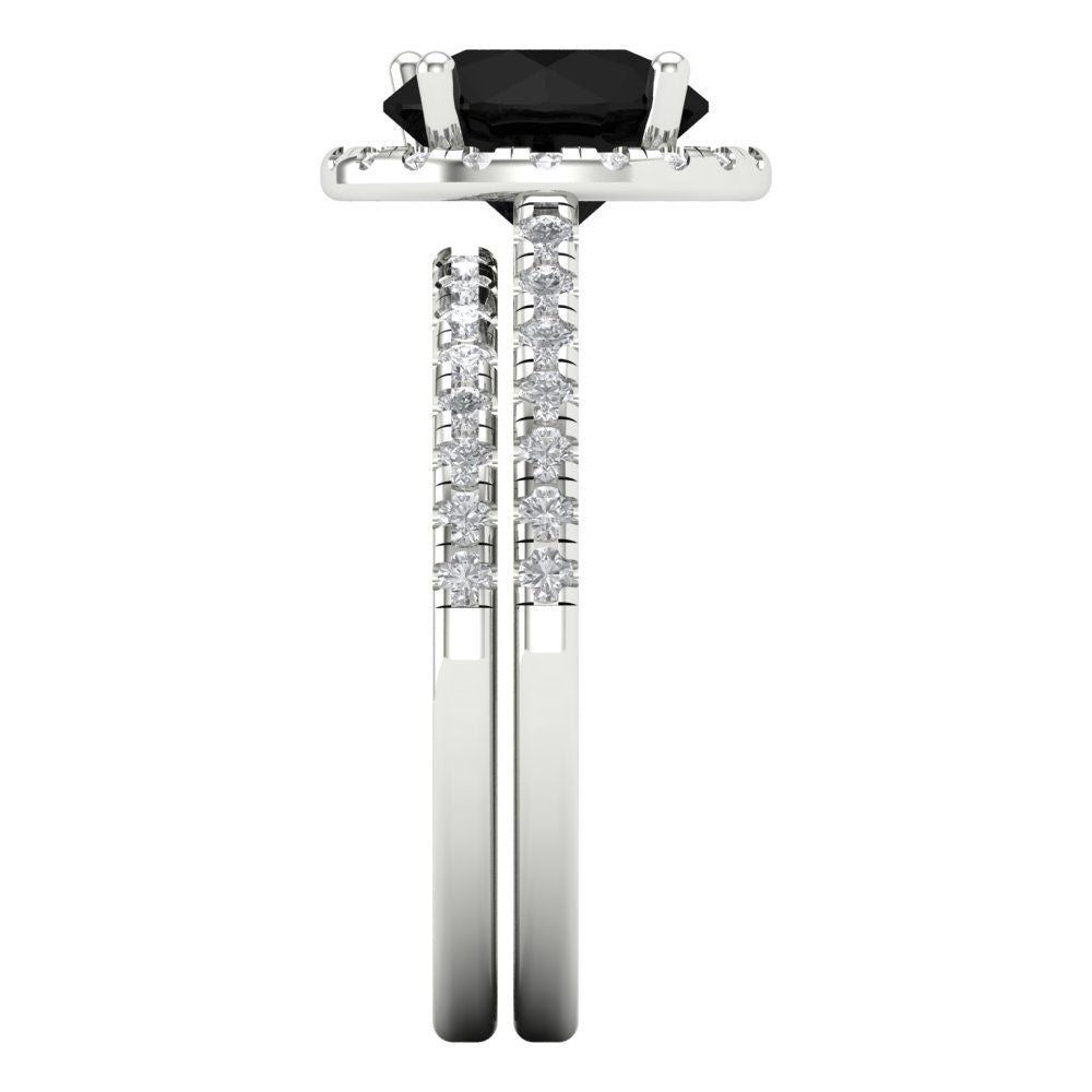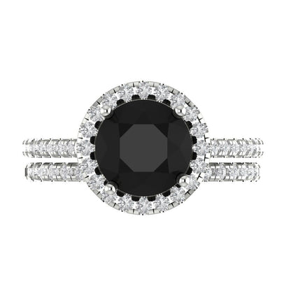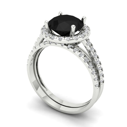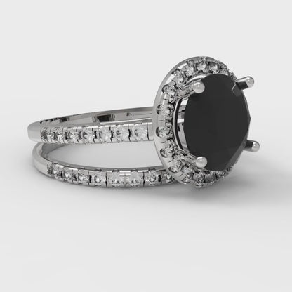 2.52 cttw Round Cut Natural Onyx Bridal Set - Solid White Gold Engagement Ring & Wedding Band