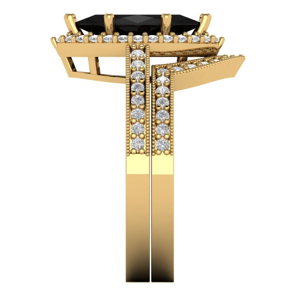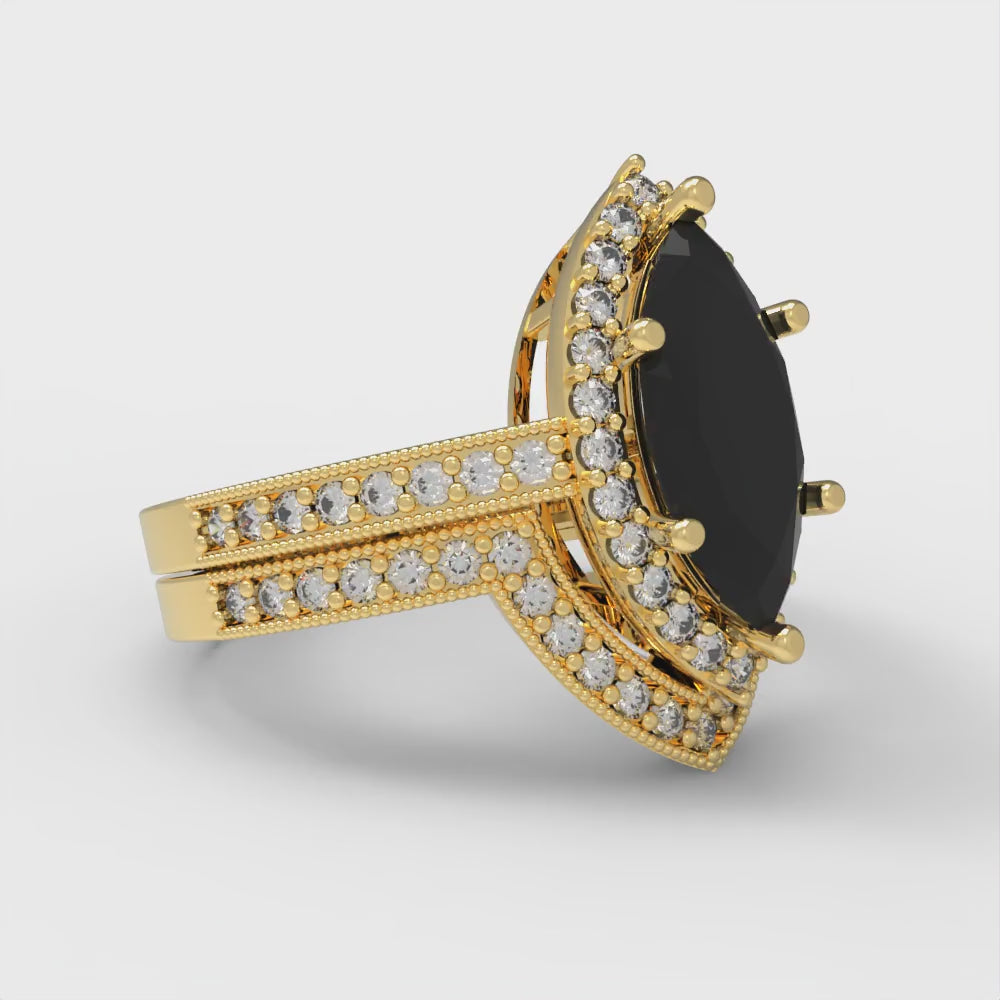 2.4875 cttw Marquise Cut Natural Onyx Bridal Set - Solid Yellow Gold Engagement Ring & Wedding Band