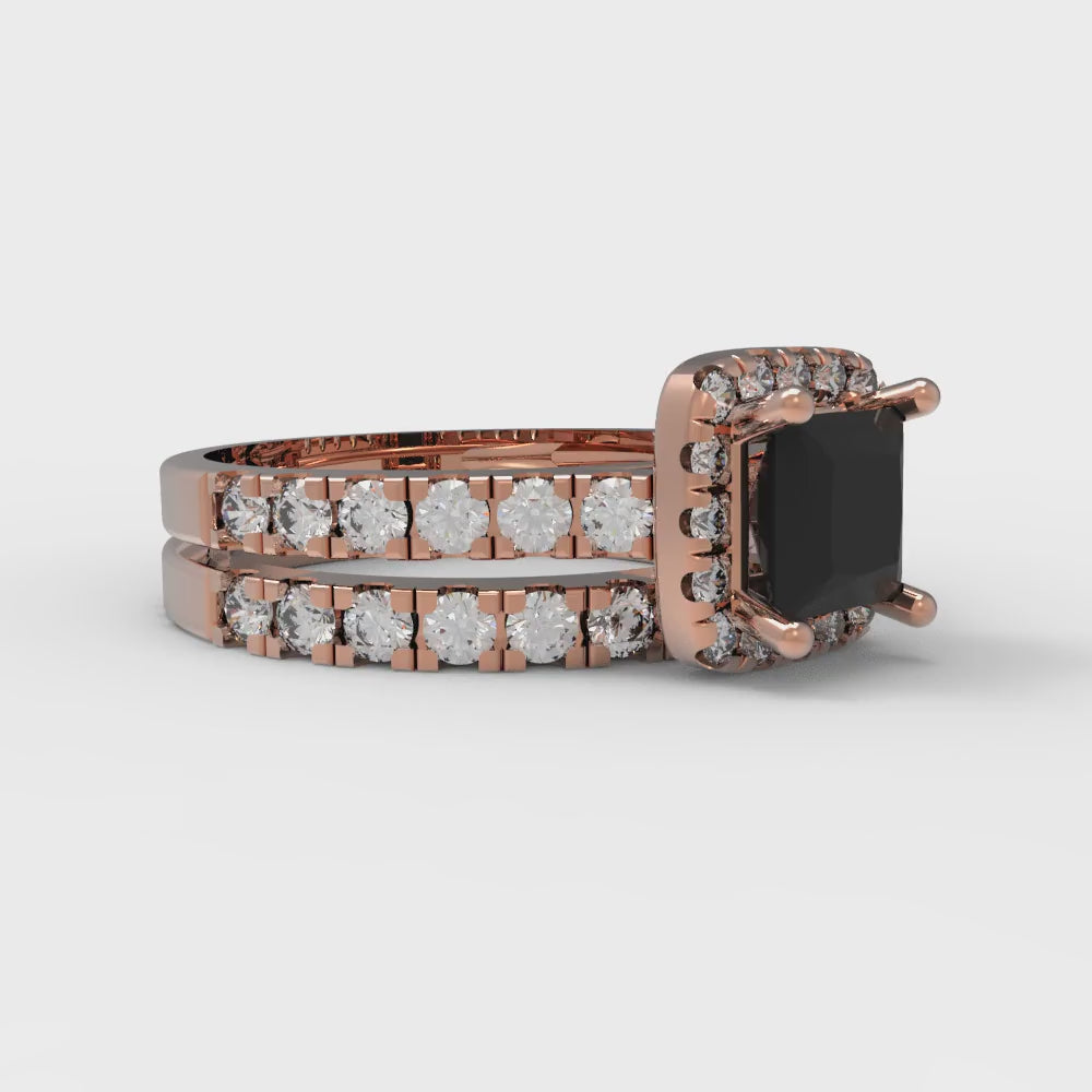 1.56 cttw Princess Cut Natural Onyx Bridal Set - Solid Rose Gold Engagement Ring & Wedding Band