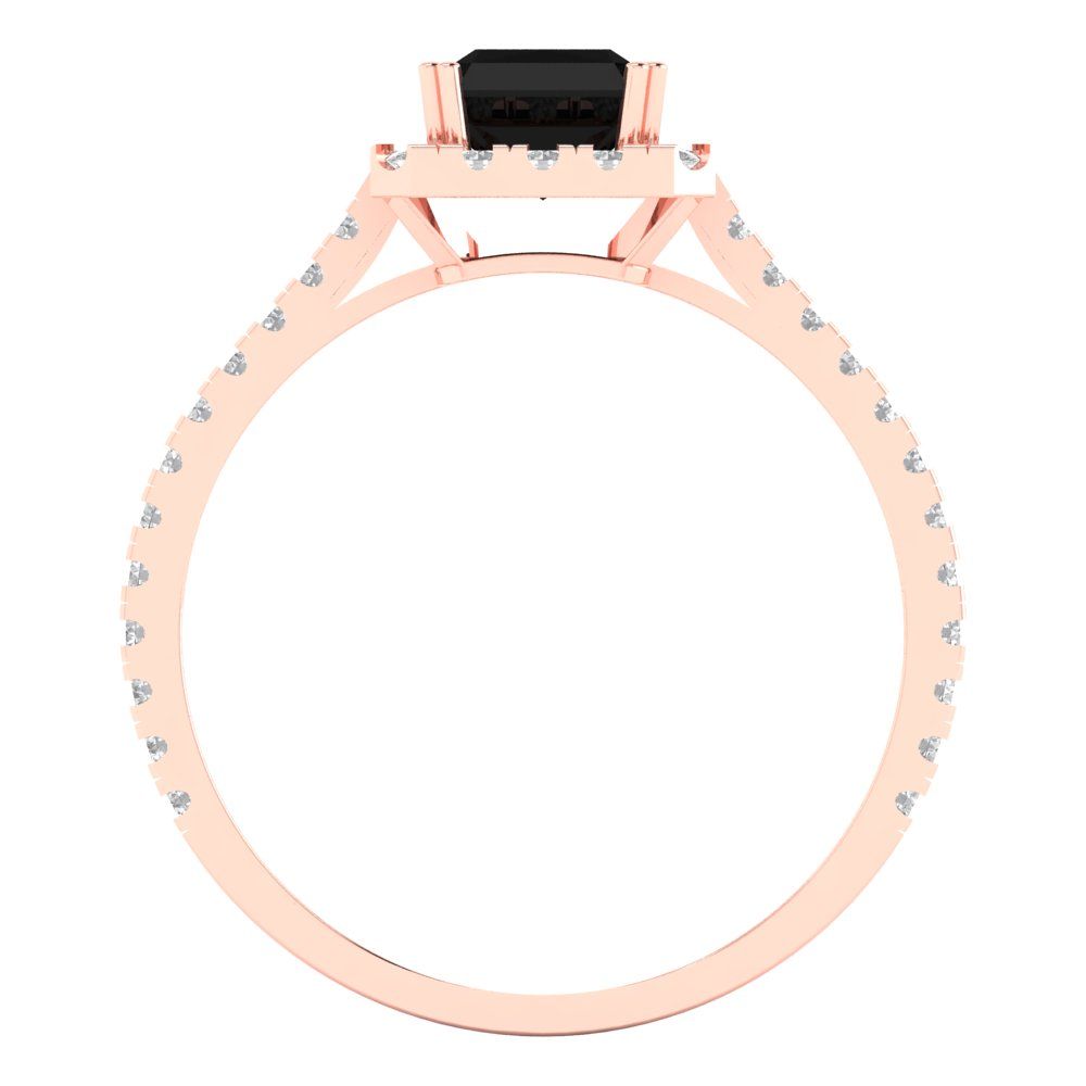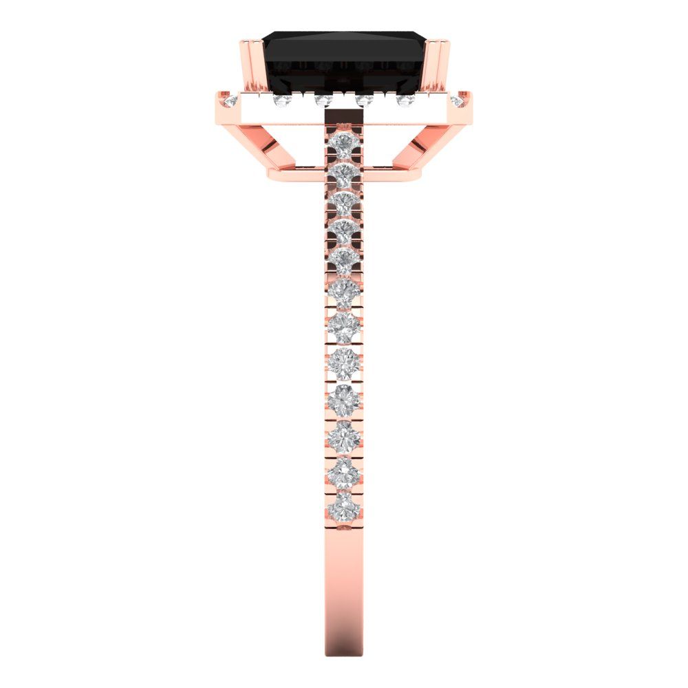 1.86 cttw Natural Onyx Solitaire with Zirconia Simulated Diamond Accents Engagement Ring - Solid Gold (Emerald Cut,7.5x5.5mm)