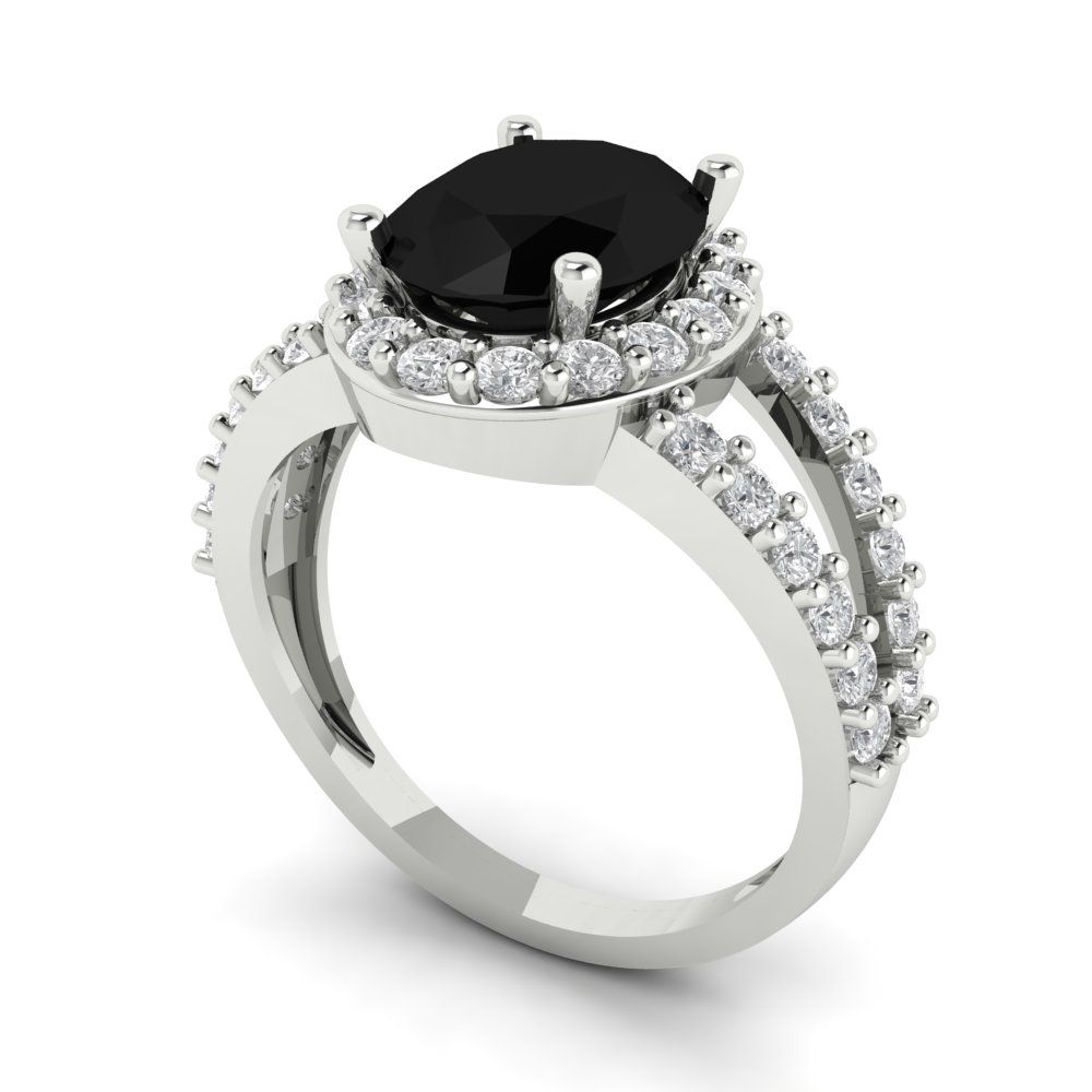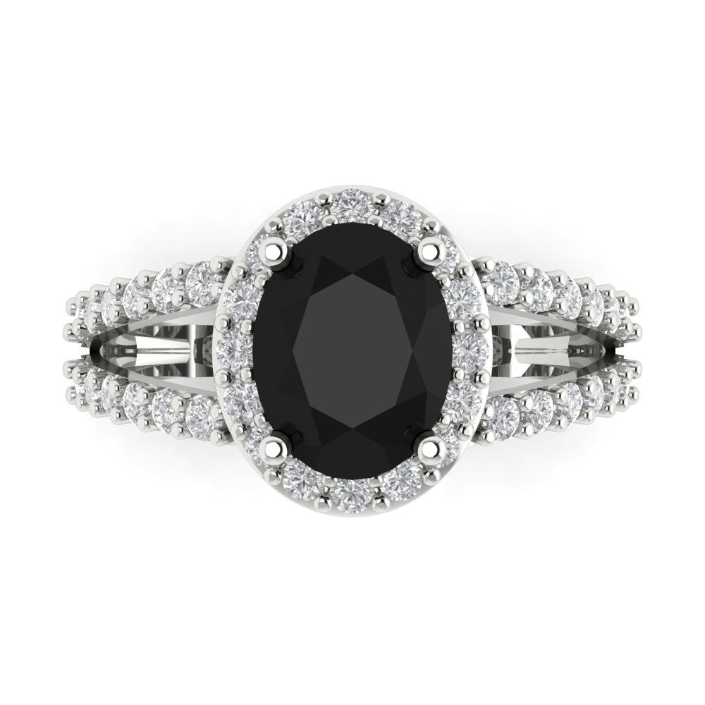 2.6 cttw Natural Onyx Solitaire with Zirconia Simulated Diamond Accents Engagement Ring - Solid Gold (Oval Cut,9x7mm)