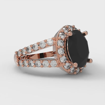2.6 cttw Natural Onyx Solitaire with Zirconia Simulated Diamond Accents Engagement Ring - Solid Gold (Oval Cut,9x7mm)